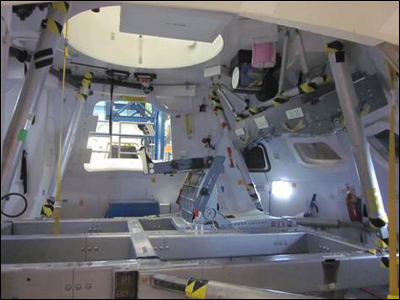 Подобный полет – весьма сложное мероприятие. Дело не только в том, что Orion будет путешествовать на расстояние в 15 раз дальше, чем орбита Международной космической станции. Главной задачей будет испытание теплозащиты, которая должна выдержать вход в атмосферу Земли с высокой скоростью, что сопряжено с нагревом поверхности КК до 2000 градусов Цельсия. Кроме того, необходимо знать, как после такого экстремального спуска сработают системы приземления 9-тонного корабля на поверхность воды в Тихом океане у берегов Калифорнии. Первые, испытательные, запуски будут осуществляться с помощью ракеты-носителя Delta IV heavy, которая может выводить на низкую околоземную орбиту до 25 т полезной нагрузки. В будущих миссиях, в том числе пилотируемых полетах к астероидам и Марсу, Orion будет выводиться в космос новой тяжелой ракетой-носителем SLS, способной выводить на низкую околоземную орбиту до 130 т полезной нагрузки. По словам Билла Герстенмайера, разработка SLS продвигается быстро и в настоящее время она готова на 70%. Интерьер космического корабля Orion на стадии сборки